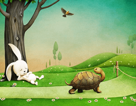 "O králíčkovi a želvě" (The Tortoise and the Hare): Tato slavná bajka připisována Ezopovi nebo La Fontainovi vypráví příběh rychlého zajíce a pomalé želvy, která ho v závodě překvapí svojí vytrvalostí. Tato bajka učí o důležitosti trpělivosti a vytrvalosti.