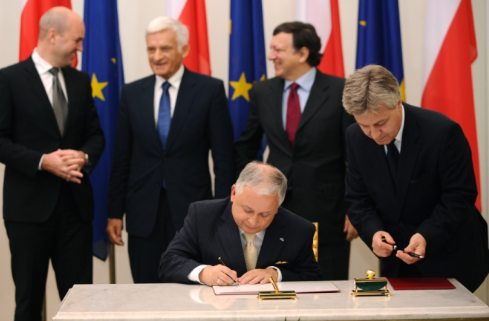 Ve státech Evropské unie ratifikaci mezinárodních dohod provádí evropský parlament. Parlament hlasuje o konečné verzi smlouvy a rozhoduje, zda ji schválí bez změn. Pokud je smlouva schválena, předseda parlamentu ji podepíše jménem celého parlamentu.